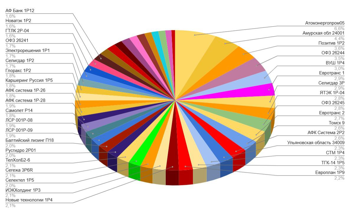 2. Облигаций сейчас 46 выпусков (без изменений). В будущем в планах сократить количество выпусков до 35. Оптимизация напрашивается, в планах продать выпуск Брусники 2Р2, у которой в сентябре оферта.