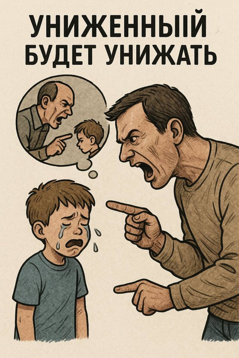 3. УНИЖЕННЫЙ БУДЕТ УНИЖАТЬ, чтобы испытать кратковременное ощущение ДОМИНИРУЮЩЕГО, но постоянно возвращаясь к УНИЖЕННОЙ ЧАСТИ по кругу.