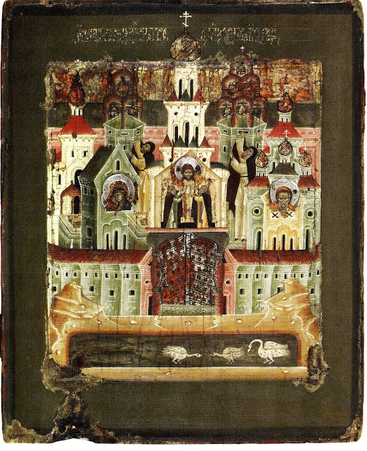 Место хранения: Рыбинский государственный историко-архитектурный и художественный музей-заповедник. Начало Соловецкой обители связано с постриженником Кирило-Белоезерского монастыря Саватием и старцем Германом, которые первыми поселились на Соловецком острове в 30-х годах XV века. Преподобный Саватий после многолетних трудов, чувствуя приближение смерти, вернулся на материк, где и скончался в 1435 году. Уже после этого на Соловки переселился преподобный Зосима, уроженец заонежского села Толвуй. Схоронив родителей и раздав имущество бедным, он принял монашество. При нем на Соловках был построен первый деревянный храм Преображения с приделом святителя Николы Чудотворца. В 1452 году преподобный Зосима принял игуменство, а в 1465 — перенес в обитель нетленные мощи преподобного Саватия. Преподобный Зосима скончался в 1478 году. В 1547 году соловецкие подвижники были канонизированы, а 8/21 августа 1566 года их мощи перенесли в новый Зосимо-Саватиевский придел монастырского с