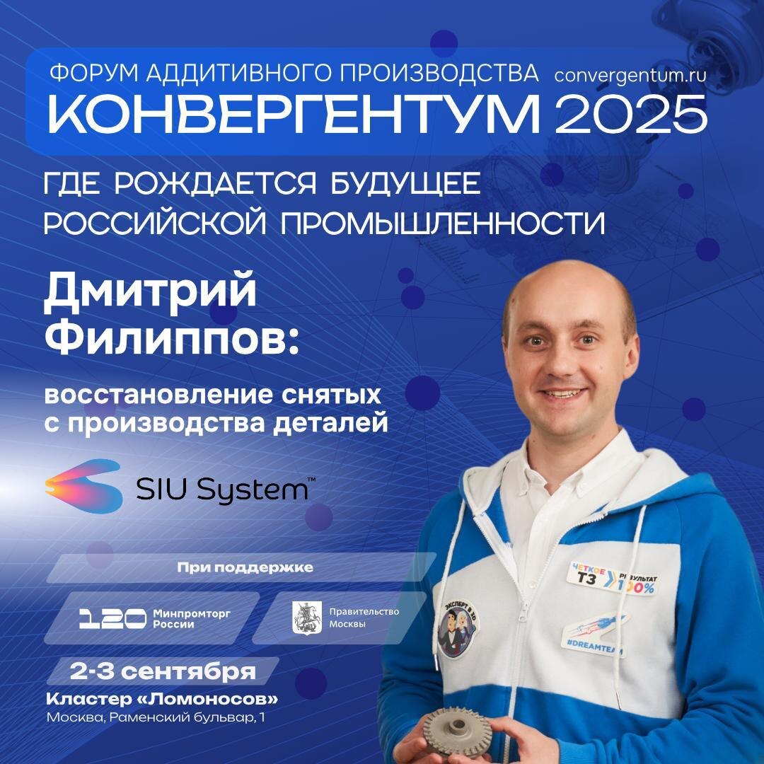 Дмитрий Филиппов: восстановление снятых с производства деталей Когда запчастей больше нет, а оборудование простаивает — как быстро и экономично вернуть его в строй? 👤 На форуме аддитивного производства «Конвергентум 2025» Дмитрий Филиппов, руководитель Центра аддитивного инжиниринга SIU System, знает ответ. Его команда специализируется на восстановлении недоступных деталей через полный цикл: от сканирования до серийной печати. Доклад Дмитрия позволит получить ответы на следующие вопросы: ✅ Как заменить устаревший компонент? Примеры реальных кейсов из металла и пластика. ✅ Какая экономия достижима? Сокращение сроков в 2–5 раз, стоимости — до 50%. ✅ От сломанной детали — к новой: цифровая цепочка (сканирование → реверс-инжиниринг → печать). ✅ Можно ли улучшить старую деталь? Снижение веса, повышение ресурса, консолидация узлов. ✅ Как создать «цифровой склад» критичных запчастей? Вы увидите практические решения для ликвидации простоев, снижения затрат и обеспечения технологической не