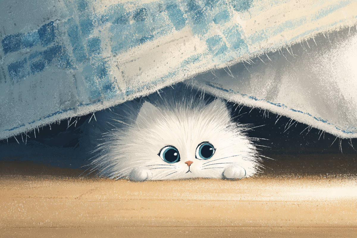 Жил-был маленький котёнок по имени Пушок. Он был пушистый, ласковый, но очень пугливый. Он боялся громких звуков, пылесоса, ветра за окном, тени от дерева… и особенно — собак. Даже если где-то далеко залает пёс, Пушок сразу прятался под диван. У Пушка была сестричка — весёлая и смелая кошечка по имени Лиля. Она всё время тянула его на прогулку, лазала по заборам и играла с воробьями. — Пошли на улицу! Там солнышко! — звала она. — А вдруг там собака? — дрожал от страха Пушок. — Ну что ты! Я же с тобой! — смеялась Лиля. Но Пушок всё равно оставался дома. Однажды Лиля вышла поиграть во двор. А Пушок наблюдал за ней из окна. Он знал: если что, она вернётся. Но вдруг — гав! гав! Из-за угла выбежала большая рыжая собака. Лиля прыгнула на дерево, но сорвалась и повисла на тонкой ветке. Собака прыгала внизу, лаяла, а Лиля жалобно мяукала: — Пушок! Помоги! Пушок замер. Сердце у него заколотилось. Он очень боялся… но это была его сестра! Она всегда защищала его, а теперь она в беде. Он глубоко