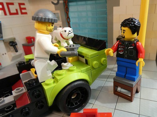LEGO-энтузиаст Martin Spunkt (captain_j03) создал потрясающую сцену из жизни минифигурки Майка, который усердно чинит зелёный транспорт. В ход идут кирпичики 1x1, шпатлёвка и краска — настоящий ремонт в миниатюре! Любопытный пёс добавляет кадру тепла и юмора. Это часть Toy Project Day 3671 — как всегда, детализация на высоте!
