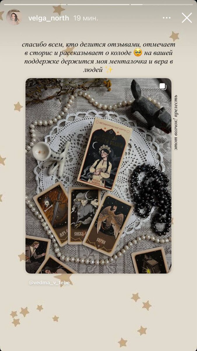 Вельга, автор колоды, прокомментировала и поделилась нашим фото её колоды, так приятно