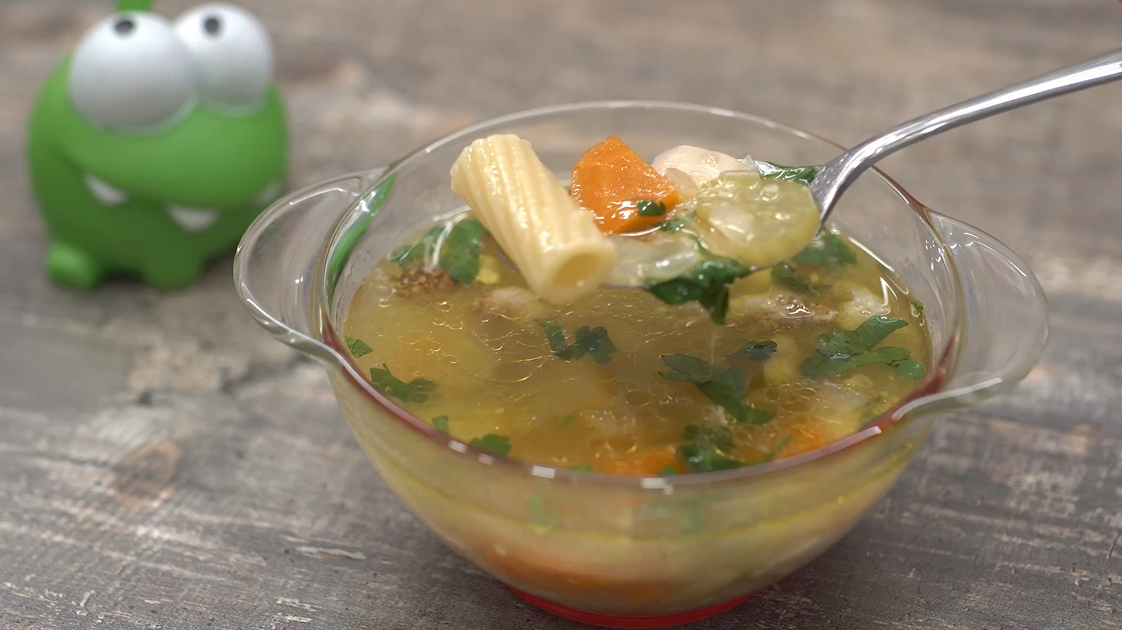 ✨ В итоге получается универсальный суп для всей семьи: насыщенный бульон с макаронами и овощами для взрослых и мягкое мясо с нежными овощами для малышей. Такой рецепт можно готовить хоть каждый день — он всегда будет вкусным и полезным.