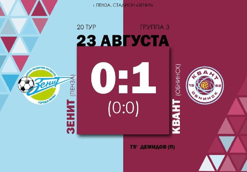 Обнинский "Квант" обыграл пензенский "Зенит" 1:0.
