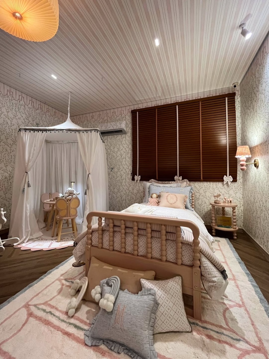 - Текстиль (подушки, ковры, балдахин) — вся мягкая часть выдержана в единой палитре.