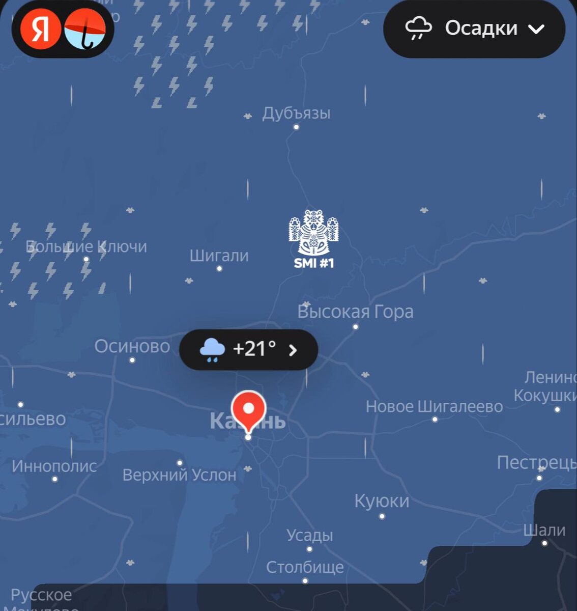🌧 Сильный ливень и гроза надвигаются на Казань