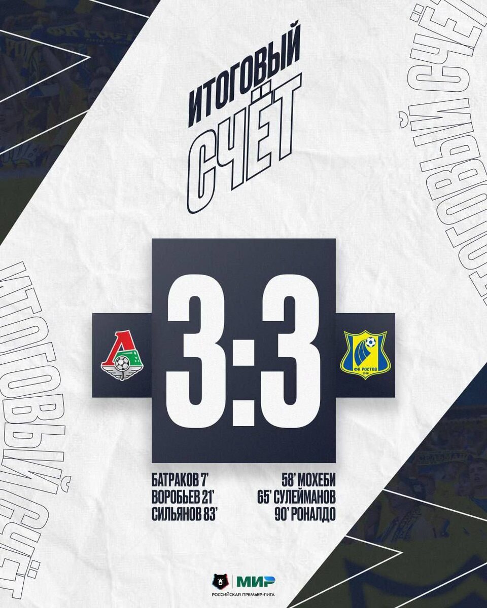 ⚽️ ФК Ростов вытащил ничью в матче с Локомотивом