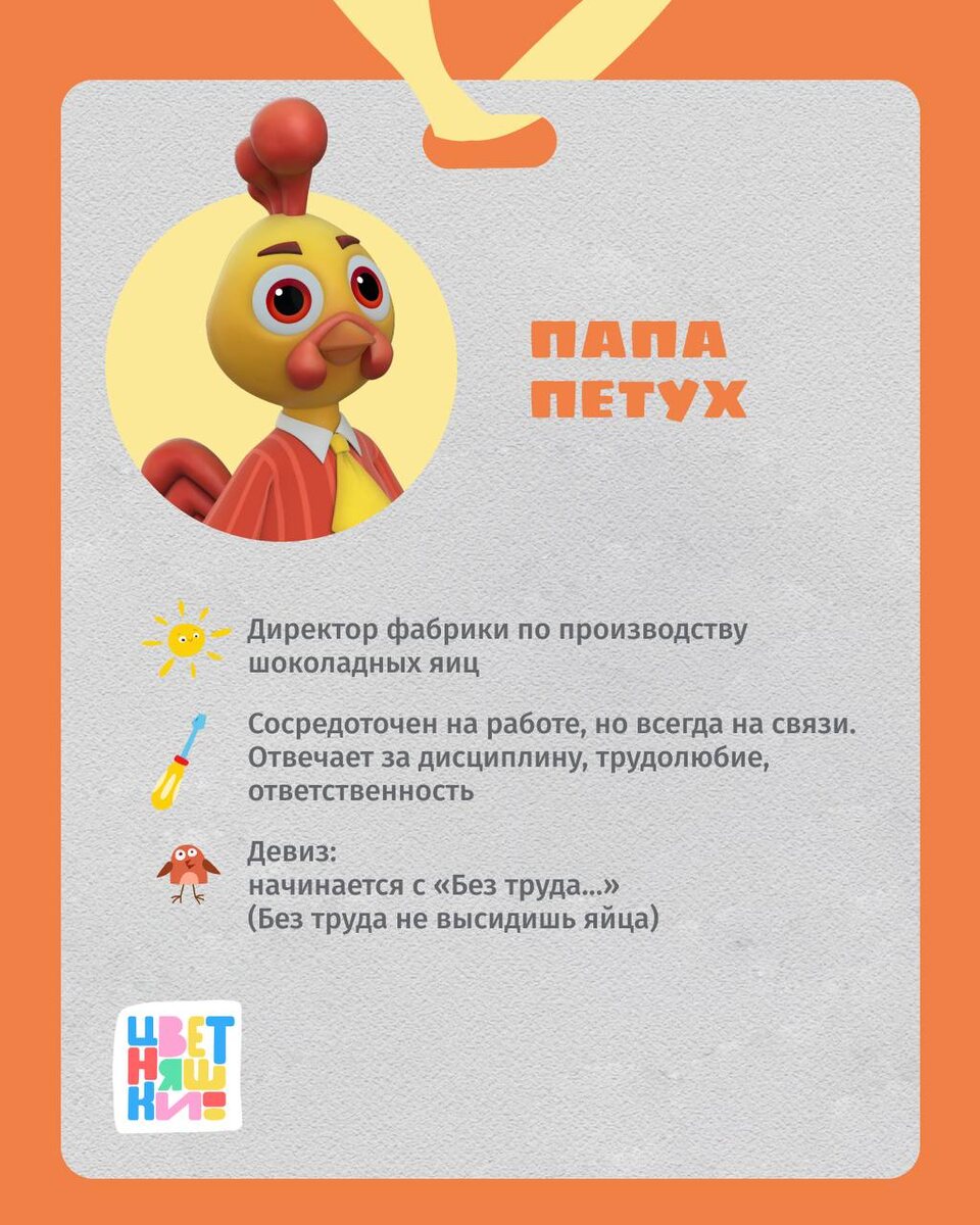 Папа может, дедушка подскажет – новый сборник «с усами и характером»😎 Смотреть в ВК Смотреть на YouTube Смотреть на RuTube В Цветняшках мужчины не просто появляются на экране — они вдохновляют, учат и поддерживают❤️ Каждый из них показывает свой подход к воспитанию, помогая детям открывать мир знаний и жизненных ценностей. Благодаря этому ваши малыши понимают, что папы бывают разные: строгие, заботливые, спортивные, деловые, забывчивые, ответственные… Но всегда любимые и важные. 🤗А кто из мужских персонажей по характеру вам ближе всего? И что вы бы написали на своём бейдже?