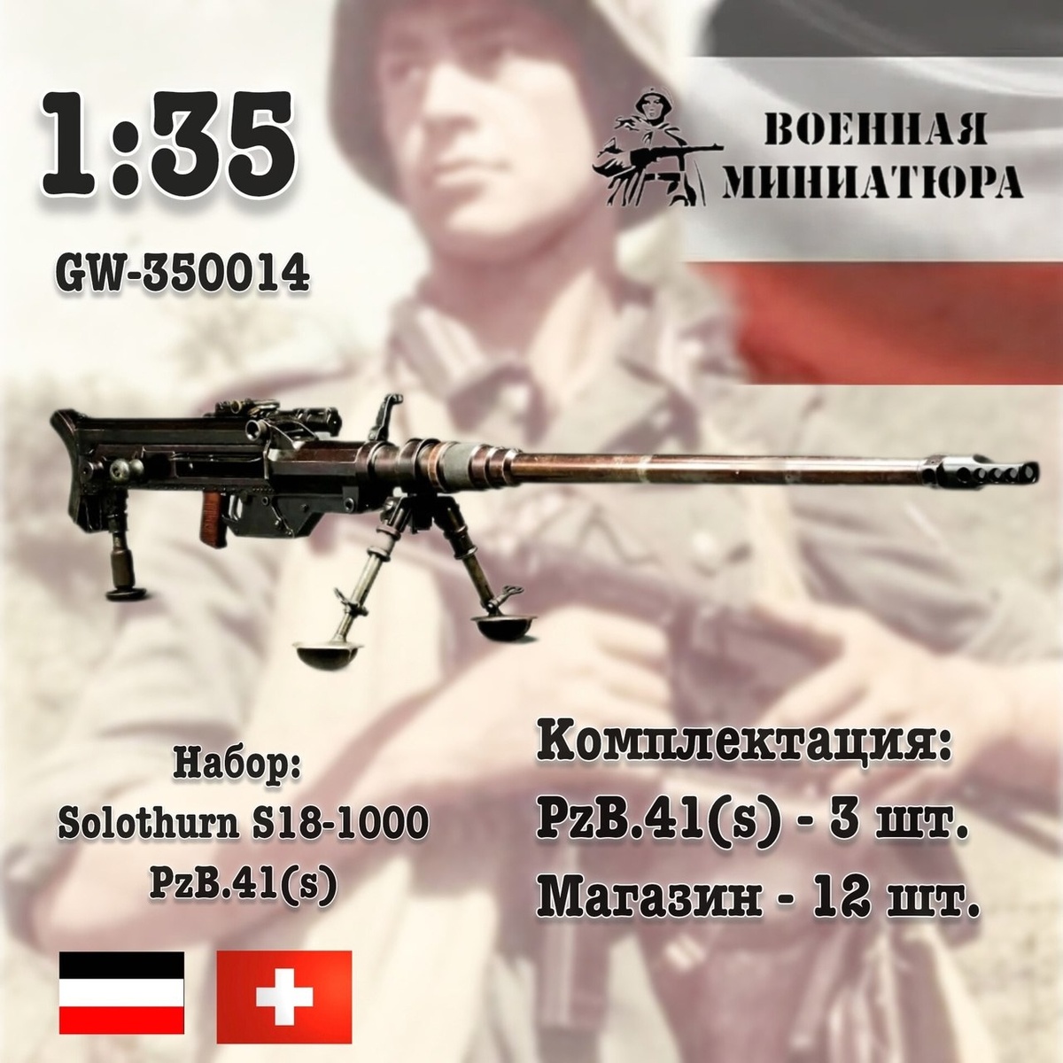 Ставропольская "Военная миниатюра" выпустила на 3D-принтере модели противотанкового ружья PzD.41(s) в масштабах 1/35 и 1/16