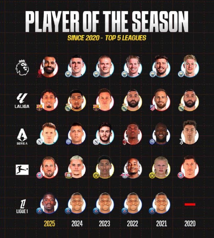 Лучшие игроки сезона в топ-5 лигах с 2020 года.