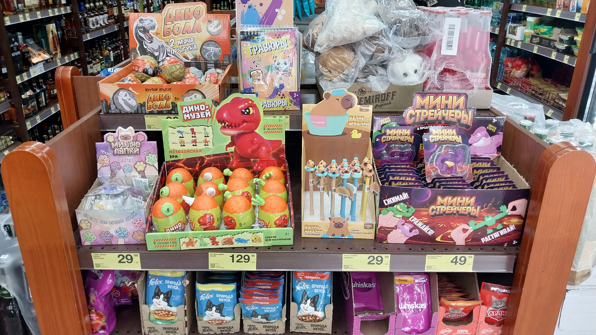 Приветствую вас, мои дорогие друзья и подписчики. Новый обзор из магазина Красное&Белое. Игрушки новые привезли. И покажу вам спиртное со скидкой. Магазин находится по адресу Ростовская область, Зерноградский район, станица Мечётинская, улица Ленина, 27. Мяч Дино Болл крутой прыгун цена 99.99 рублей. Для детей от 3х лет. Сквиш Милые лапки с блёстками, яркие,мягкие, милые. 6 видов в коллекции. Для детей от 3х лет. Цена 29.99 рублей. Игрушка Дино-музей мезозойская ,6 объектов, цена 129.99 рублей. Набор для творчества Гравюры цена 69.99 рублей. Ручка гелевая Капибара цена 29.99 рублей. Игрушка Мини-Стрейчеры цена 49.99 рублей. Пенал Мягкий Мишка цена 249.99 рублей. Печенье Орео какао и ваниль /клубника /апельсин 95 г цена с учётом скидки 54.89 рублей . Шоколад Милка молочный вишня и нежная начинка 80 г цена с учётом скидки 96.89 рублей . Коньяк Old Mtskheta 7 лет 40 % 0,5 л цена с учётом скидки 651 руб. Страна Грузия. Лови момент! Коньяк Старейшина Дали 10 лет 40 % 0,5 л ц