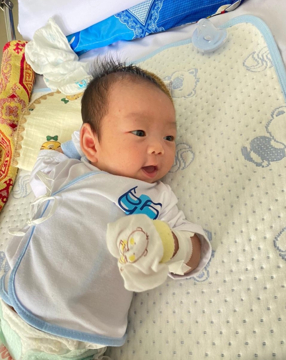Две недели назад малыш Тьена и Тхао заболел. Вдруг ему стало трудно дышать. Оказалось, вирусная пневмония. Несколько дней Кэм даже лежал в реанимации. Когда перевели в палату, тревога наша несколько снизилась. Тьен всё время помогал слабенькой Тхао, взял отпуск без содержания. Каждые два часа нужно было давать Кэм по 50 граммов грудного молока. Пил он из бутылочки, иначе не мог. Было так жаль малыша... Это фото из больницы. Мне Кэм кажется таким хорошеньким и милым! А волосёнков-то сколько! Медицинская помощь во Вьетнаме только платная. Кэм лежал в больнице 12 дней. Тьен заплатил более 500 долларов за услуги. Но сейчас все уже дома. Несмотря на болезнь, Кэм прибавил в весе за месяц примерно килограмм и выглядит весёленьким. Тьен говорит, что дома очень хорошо, спокойно. В палате было шесть младенцев с мамами. Понятное дело, то один плачет, то другой... На лбу у Кэма какая-то непонятная царапинка... Не узнала пока, что это. Тхао в больнице отдыхала между заботами о Кэме на раскла