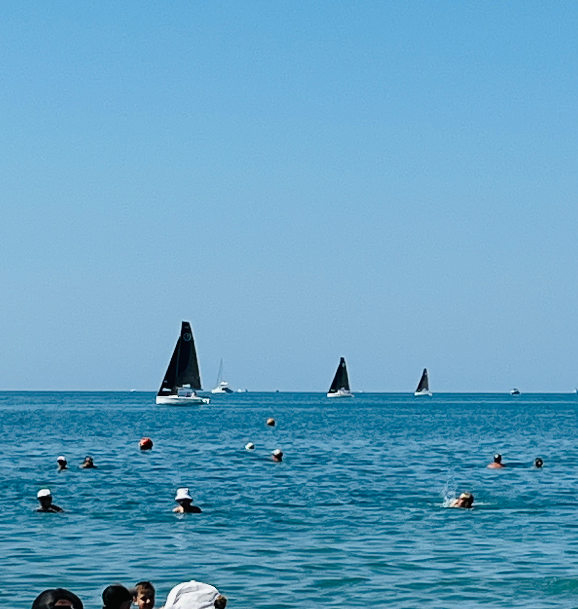 Были сильные волны, но я еще успела искупаться и немного поплавать.