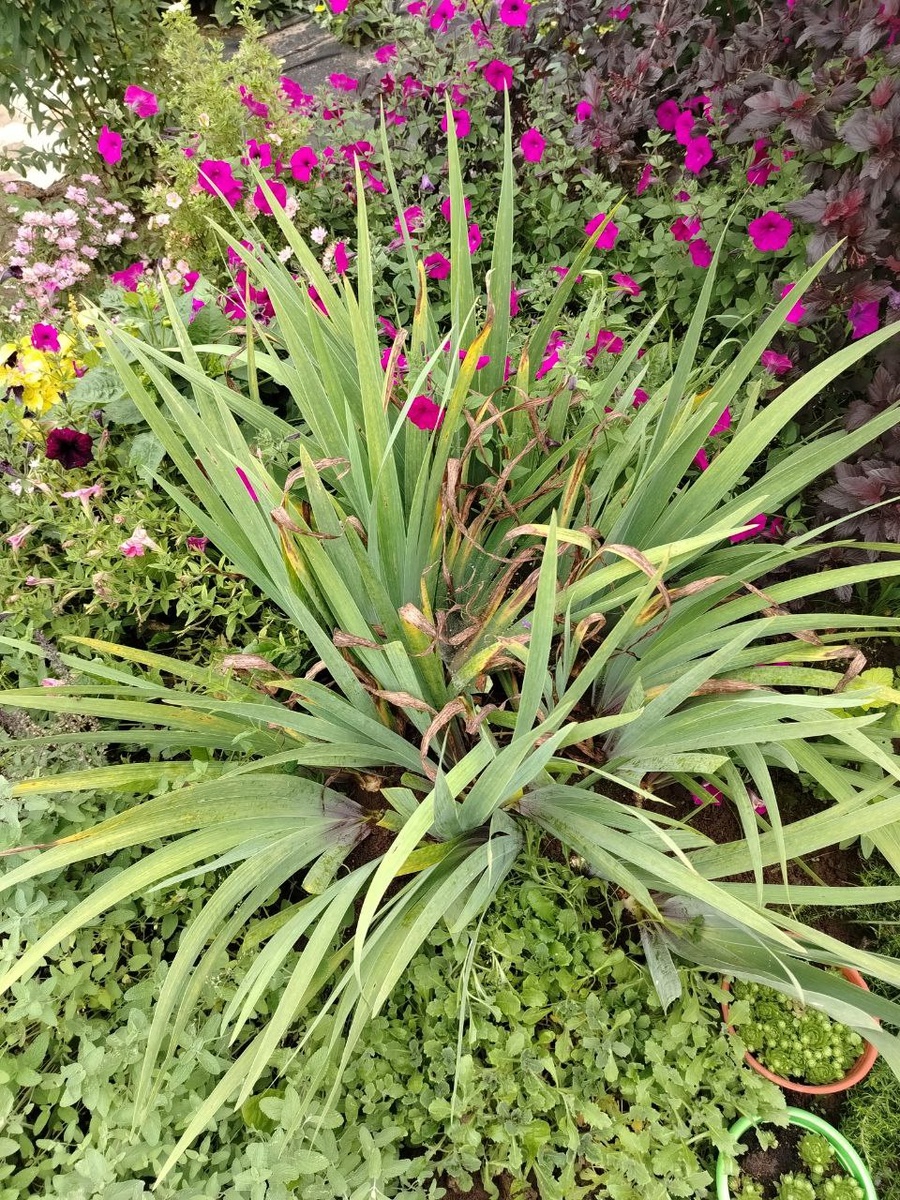 Занялась сегодня обрезкой ирисов. Очень уж они страшные стоят🙈 Ну и посадила новиночку. А вам в помощь несколько советов по уходу за ирисами в августе. Некоторые мероприятия по уходу за ирисами в августе: Обрезка. Сразу после окончания цветения нужно удалить цветоносы. Делать это следует, когда стебли с увядшими цветами уже подсохли, но на них ещё не начали формироваться семенные коробочки. Отрезать цветонос нужно как можно ниже. Листву в это время удалять не надо — она ещё кормит всё растение и способствует накоплению питательных веществ в корневищах. Подкормка. В конце августа ирисам следует дать фосфорно-калийную подкормку. Можно приготовить смесь из 55–60 г суперфосфата и 25–30 г калийной соли. Под каждый куст достаточно внести по 15 г смеси, заглубляя в почву посредством рыхления. Обработка от болезней. В конце лета листья ирисов часто бывают поражены грибковыми инфекциями — они покрываются ржавыми или чёрными пятнами. Такие листья нужно удалить и уничтожить, а всё растение опрыс