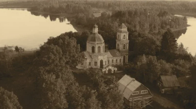 До 1962 года церковь была действующей, что в условиях атеистического государства редкость даже для сельской местности. Во время гонений Хрущёва на церковь храм закрыли. Он ветшал и разваливался. Так что долгое время архитектурной доминантой лесного озера была руина - тоже было, наверное, красиво, хотя и зловеще. С 1998 года по 2018 церковь восстанавливали. В 2018 восстановили. Так вот она-то и была построена в 1787 году.
