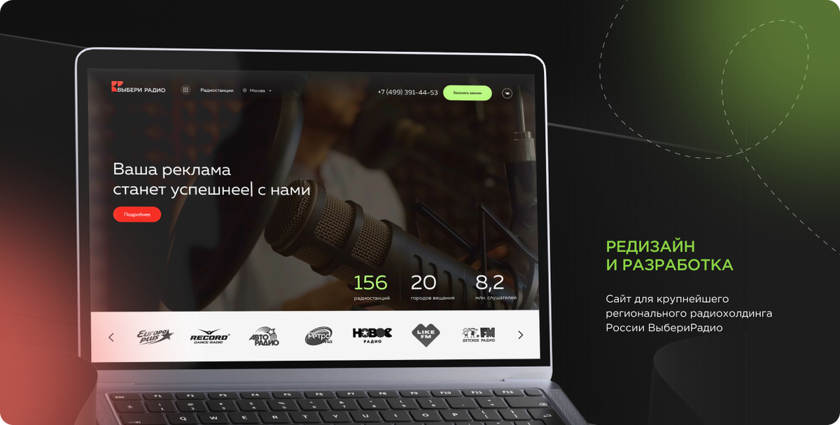 Обновленный сайт «Выбери Радио» стал полноценным рабочим инструментом, сочетающим технологичность, удобство и информативность. Ресурс решает задачи клиентов и сотрудников компании, упрощает коммуникацию и отражает масштаб холдинга.
