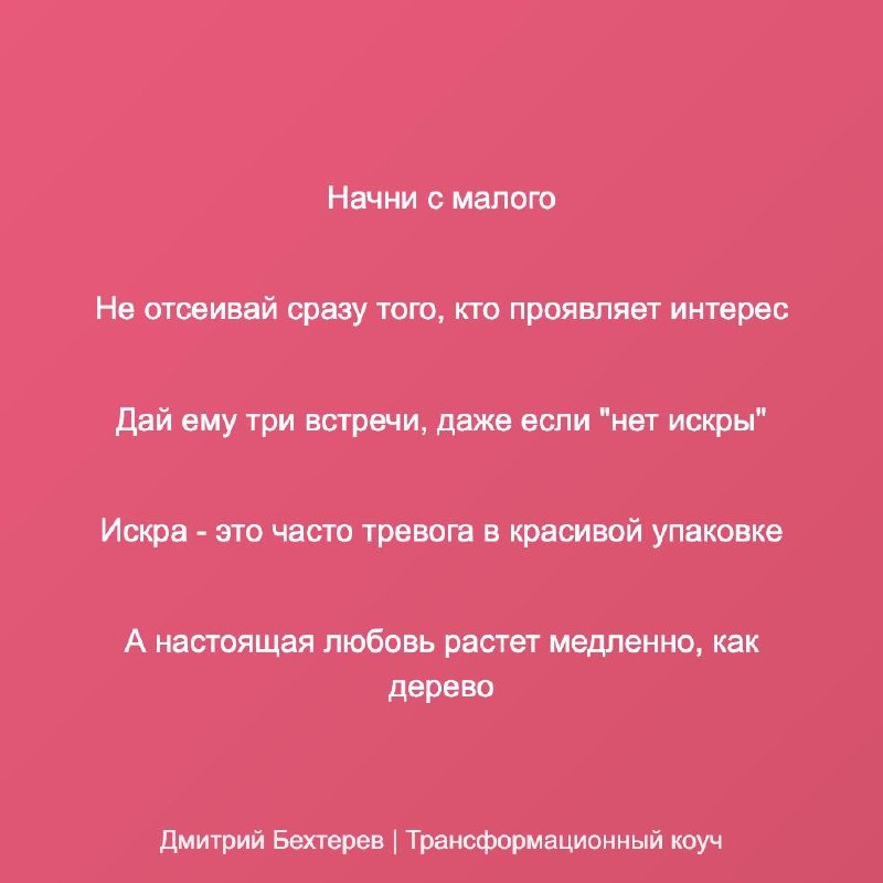 ПОЧЕМУ Я СНОВА ПРИТЯГИВАЮ ТЕХ, КТО НЕ МОЖЕТ ДАТЬ МНЕ ЛЮБВИ? Основная причина - активная метапрограмма: "Поиск признания" + защитные механизмы Если есть та часть, которая боится привязанности, тогда может включаться программа надменности, которая будет защищать эту ранимую часть Механизм работы: 1. Изгнанная часть: детская часть, нуждающаяся в безусловной любви, была травмирована ("любовь нужно заслужить") 2. Защитная программа: включается поиск признания через недоступных партнеров 3. Результат: притягивание тех, кто не может дать любви, потому что это безопаснее чем реальная близость Самое страшное - что тебя не отвергнут, а примут. Полностью. Со всеми недостатками. И тогда нужно будет поверить, что ты этого достойна