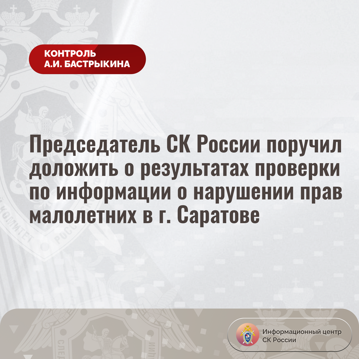 Председатель СК России поручил доложить о результатах проверки по информации о нарушении прав малолетних в г. Саратове