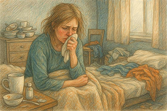 Потом Дуня заболела сама — то ли от переживаний, то ли от усталости. Температура, кашель, слабость. Больничный лист продлевали снова и снова. А дом тем временем все глубже погружался в хаос.