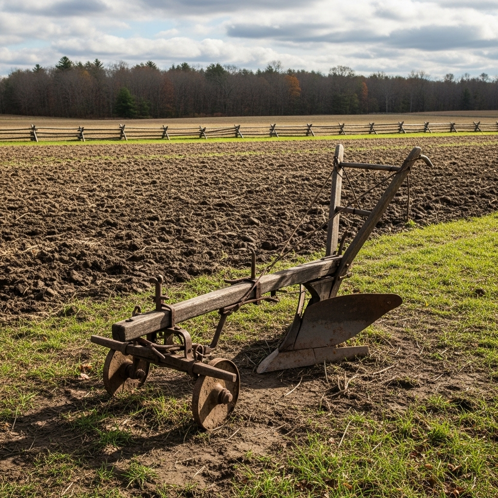 Добрый день, славный человек! Коли заглянул ко мне на хутор, да еще и про дела мои расспрашиваешь, присядь на завалинку, я тебе поведаю о своих верных товарищах. Нет, не о соседях речь, а о тех, без кого и дня моего не бывает, без кого земля молчала бы, а амбар пустовал. Расскажу я тебе про свой инструмент, про мои руки, что из дерева и железа сделаны. Орудия пахоты и подготовки земли Все начинается с земли, с ее весеннего пробуждения. И первый мой помощник тут – плуг. Мой плуг не чета нынешним новомодным штуковинам, он из крепкого дуба сработан. У него есть колесный передок, чтобы глубоко не зарывался, и деревянное дышло для упряжи. А главные его части – это сошник, или лемех, что землю подрезает, да отвал, который пласт земли переворачивает. Лемех у меня, конечно, железный, иначе с нашей глинистой почвой не сладить. Тяжел он в работе, и мне, и волу моему, Борушке, спину ломит, пока пашню поднимешь. Но без него – никак, ведь он землю-матушку к новому урожаю готовит. После плуга идет