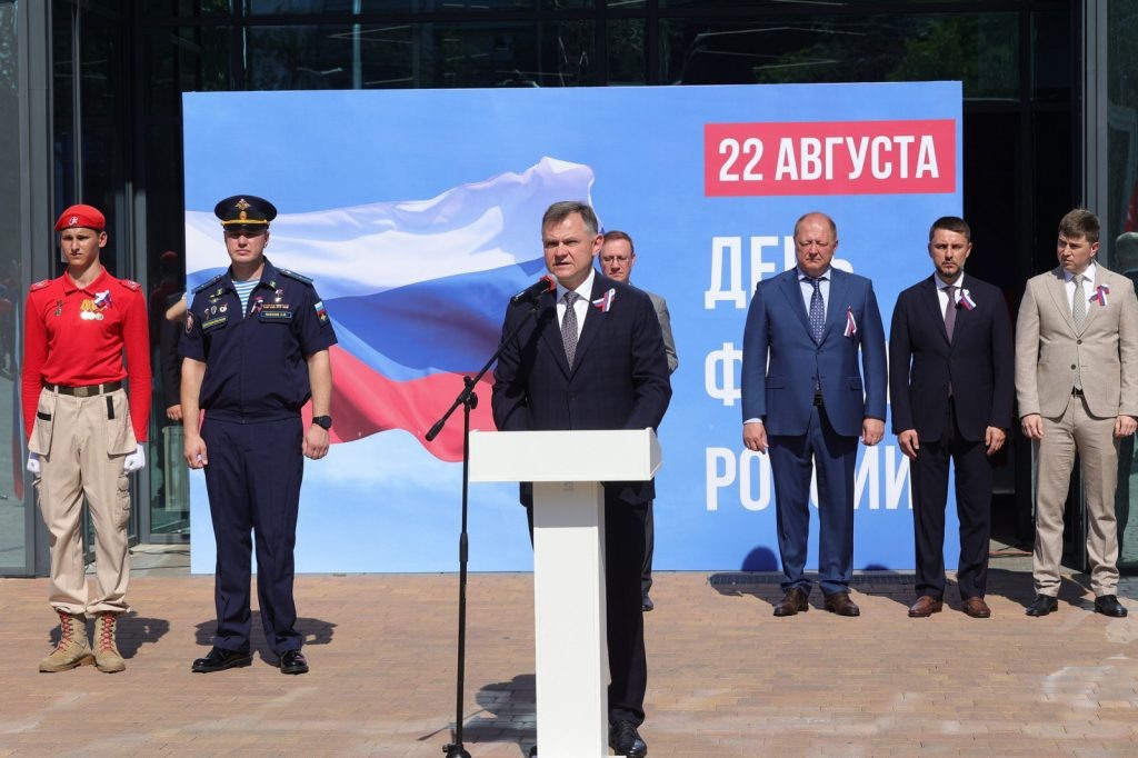 «Это многовековая история России, слава наших предков, гордость за сегодняшние достижения и вера в большое будущее. С триколором совершают ратные подвиги воины СВО, спасают врачи, помогают волонтёры. Каждый, кто сегодня строит, учит, покоряет высоты в науке, культуре и спорте, – делает это под флагом России», — сказал Юрий Слюсарь.