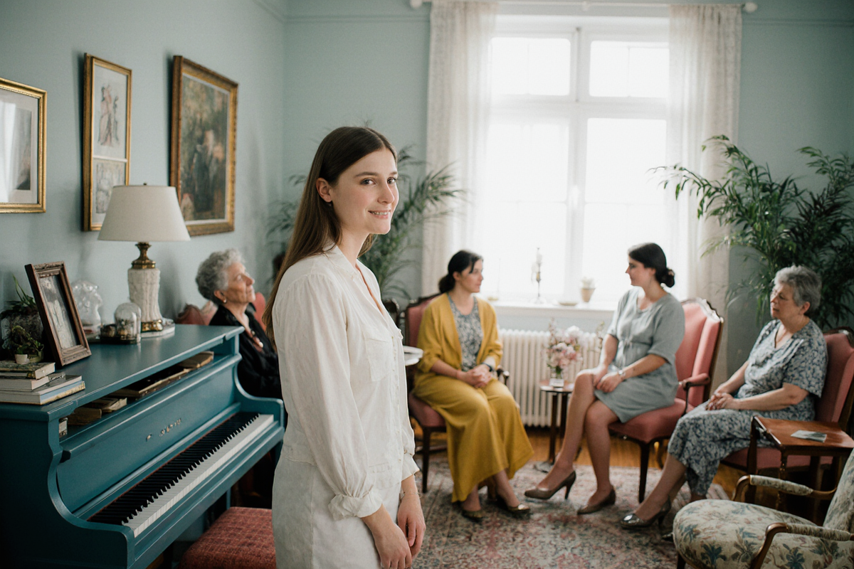 Вечером, стоя перед дверью квартиры 47, она услышала звуки фортепиано. Мелодия была знакомой — что-то из Шопена. Марина Степановна открыла дверь, и Анна увидела совершенно преображенную квартиру. Мебель была сдвинута к стенам, в центре комнаты стояло пианино, а вокруг на стульях сидели человек десять разного возраста.