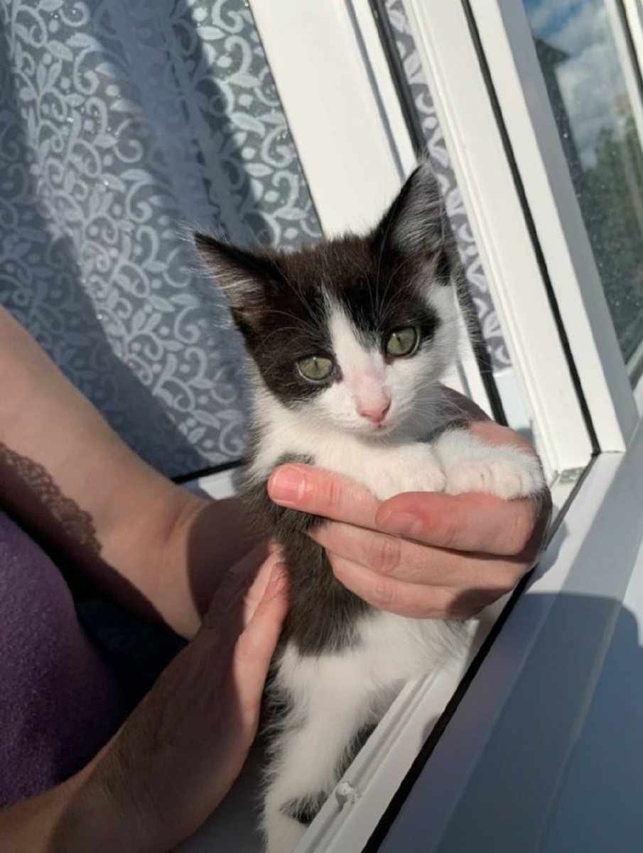Чёрно-белая кошечка, 2мес., ласковая, нежная.
