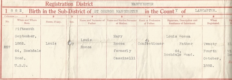 Рокка родился в сентябре 1882-го года, в семье итальянских иммигрантов Луи-старшего и его жены Мэри. Его отец был кондитером и продавал мороженое, которое готовил дома. К счастью для «Манчестер Юнайтед», страстью Луи-младшего было не мороженое, а футбол. Но еще большую страсть он испытывал к местному «Ньютон Хит».