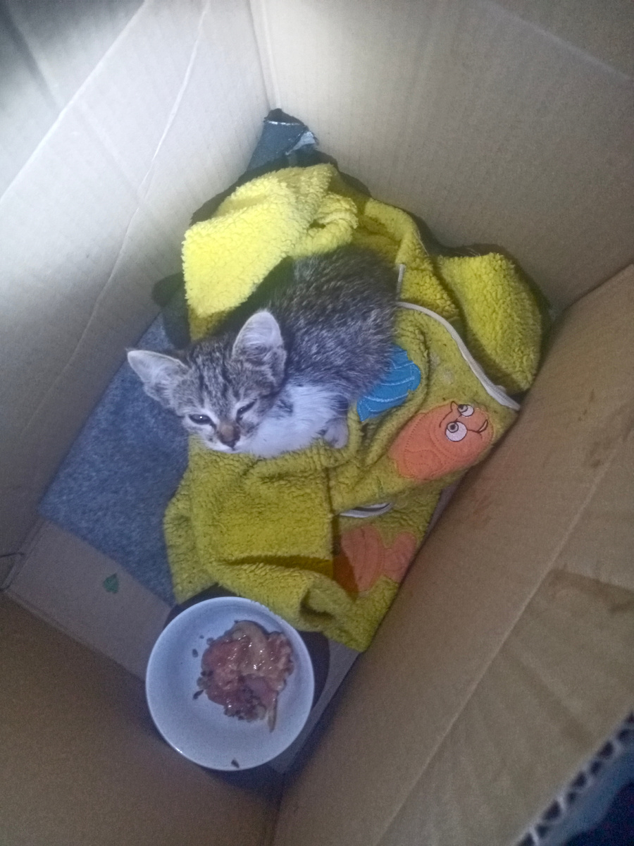 А в субботу пошли на базар. И снова,в том же логу,дети у меня бросились под колеса машины! Я чуть инфаркт не получила. А они из под визжащих от торможения шин котенка ,ну совсем малюсенького достали!