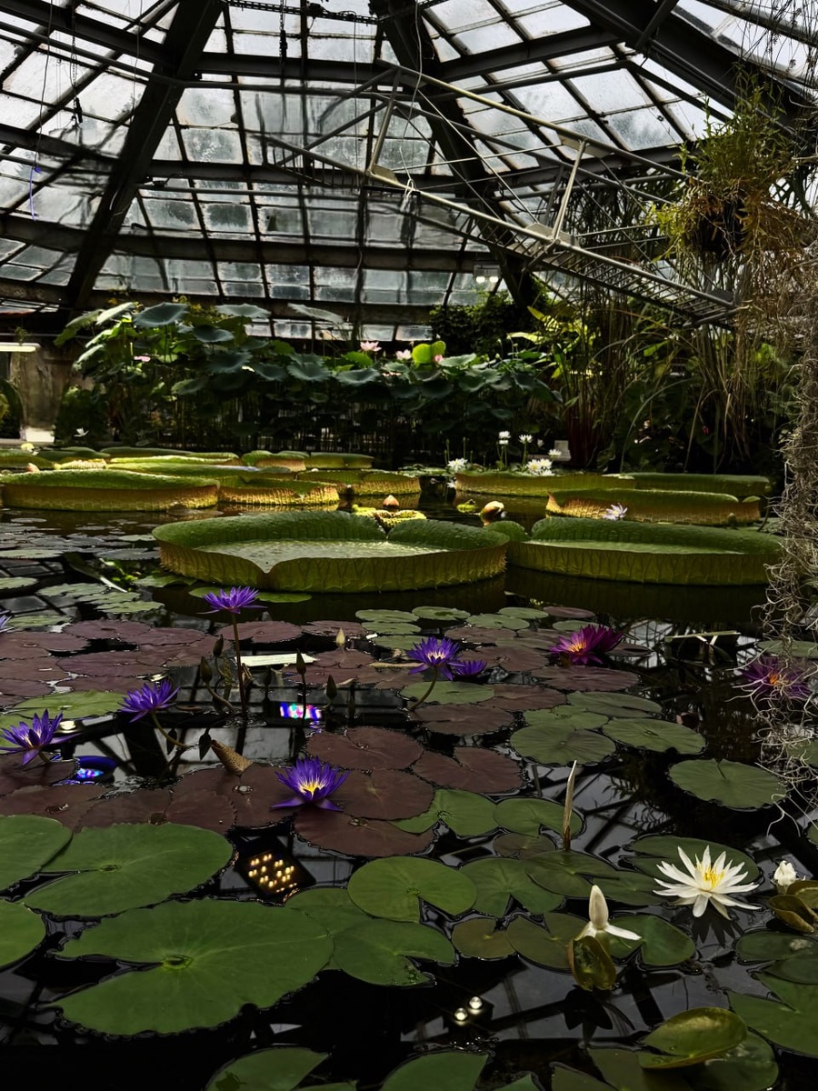 Цветки до 30 сантиметров в диаметре можно увидеть на водном маршруте в оранжерее водных и прибрежных растений. Однако не всех из них успели раскрыться, поэтому еще есть время, чтобы туда заглянуть.