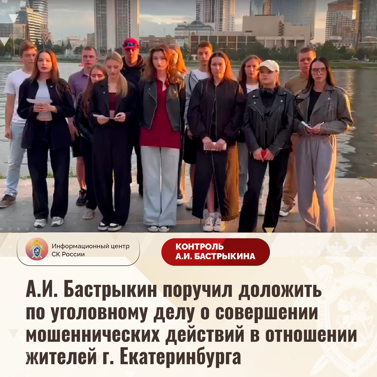 А.И. Бастрыкин поручил доложить по уголовному делу о совершении мошеннических действий в отношении жителей г. Екатеринбурга В социальной сети размещено видеообращение к Председателю СК России жителей города Екатеринбурга по вопросу несогласия с ходом установления обстоятельств совершения мошеннических действий представителями компании «RC Group». На протяжении трех лет сотрудники фирмы предлагали гражданам приобретение партнерства, обещая дальнейший заработок. При этом для оплаты они навязывали клиентам оформление кредитов, а после получения денежных средств перечисляли их на сторонние банковские счета и переставали выходить на связь. Виновные к ответственности не привлечены, деятельность организации не прекращена. Ранее указанная ситуация получила распространение в СМИ. А.И. Бастрыкин поручал представить по ней доклад. В СУ СК России по Свердловской области возбуждено уголовное дело. Председатель Следственного комитета Российской Федерации Александр Иванович Бастрыкин поручил руководи