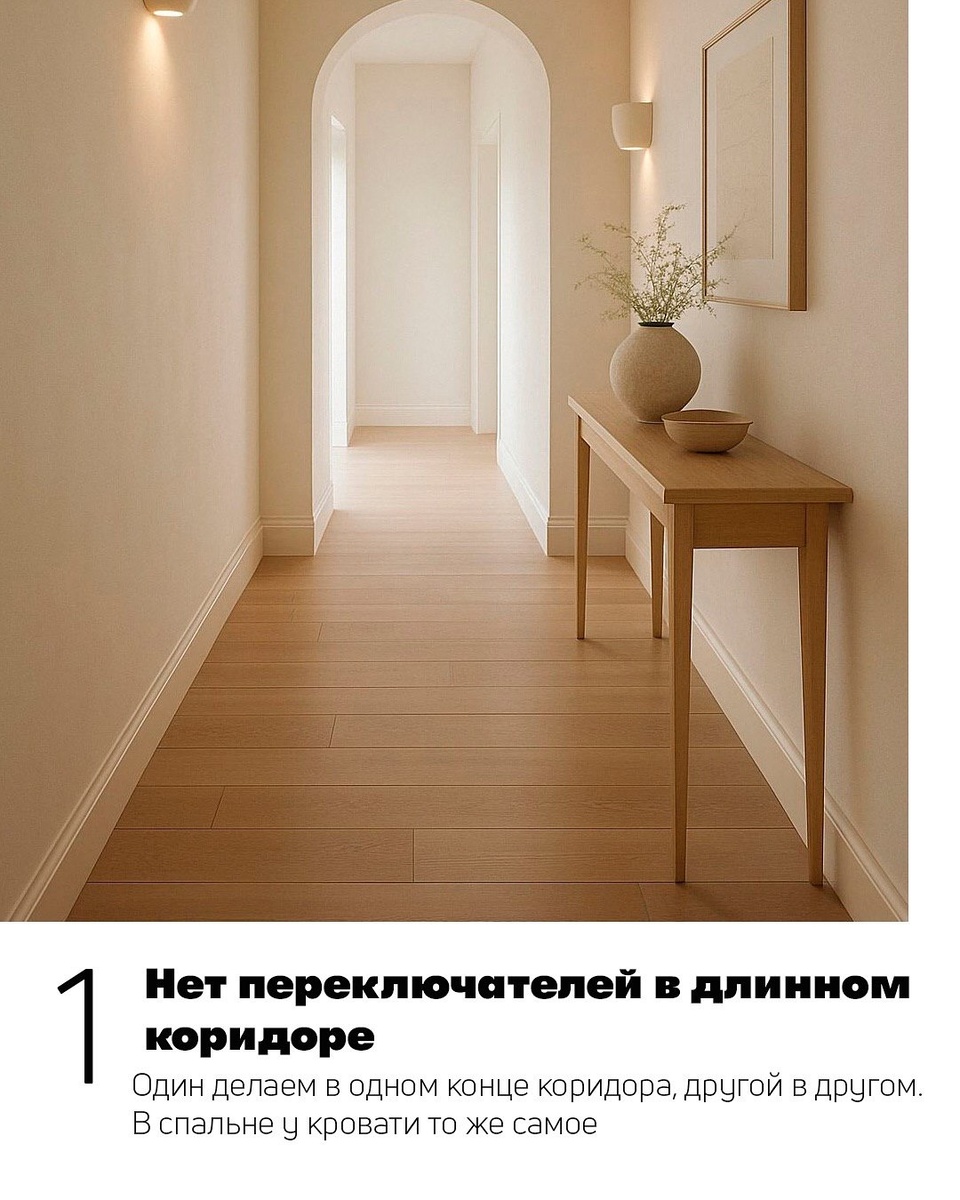 Ремонт — дело не только затратное, но и стратегическое: ошибки на этапе планирования могут потом стоить вам нервов, денег и даже уюта. На фото — наглядные примеры самых частых промахов, которые допускают владельцы квартир. Разберём каждую ситуацию и расскажем, как сделать правильно. Представьте: идёте вечером по длинному коридору, включили свет в начале, а чтобы выключить — нужно возвращаться. Как правильно: ставим проходные выключатели — в начале и в конце коридора. В спальне — у входа и рядом с кроватью. Щит на видном месте — вечная проблема интерьеров. Маскировка редко смотрится эстетично. Как правильно: сразу переносите электрощит в шкаф или нишу. Это удобно и аккуратно. Балкон превращается в уютный уголок, а вечером сидеть там без света или заряжать гаджеты неудобно. Как правильно: хотя бы одна розетка и бра/потолочный светильник должны быть предусмотрены. Плитка всегда остаётся холодной. Особенно на кухне и в прихожей это неприятно. Как правильно: правило простое: где плитка