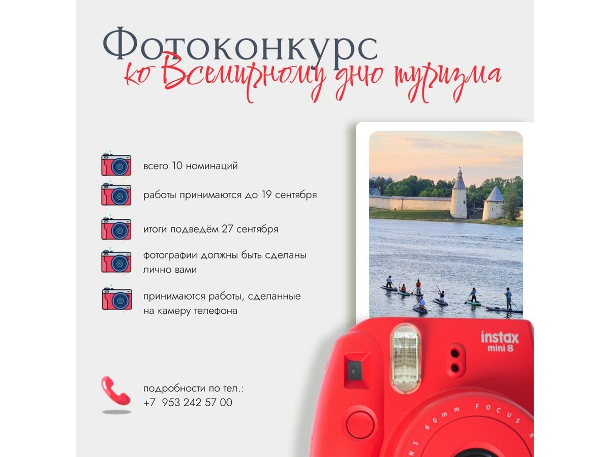 Жителей области приглашают принять участие в фотоконкурсе ко Всемирному дню туризма 📌 Туристский информационный центр Псковской области приглашает жителей региона принять участие в фотоконкурсе, посвященном Всемирному дню туризма (27 сентября). ✨ Фотографии должны быть сделаны лично в Псковской области, в хорошем качестве (в т.ч. мобильные). Работы принимаются до 27 сентября на почту: infopunktpskov@yandex.ru с указанием номинации. 🏆 10 номинаций: пейзажи, атмосфера городов, экоприключения, наследие ЮНЕСКО, виды с высоты, нетипичные кадры, активный туризм, военно-патриотическая тема, дневник путешественника и закулисье маршрутов. 🎁 Победители в каждой номинации получат памятные подарки. Итоги будут подведены 27 сентября. 👉Подписывайтесь на ВЛуки.ру