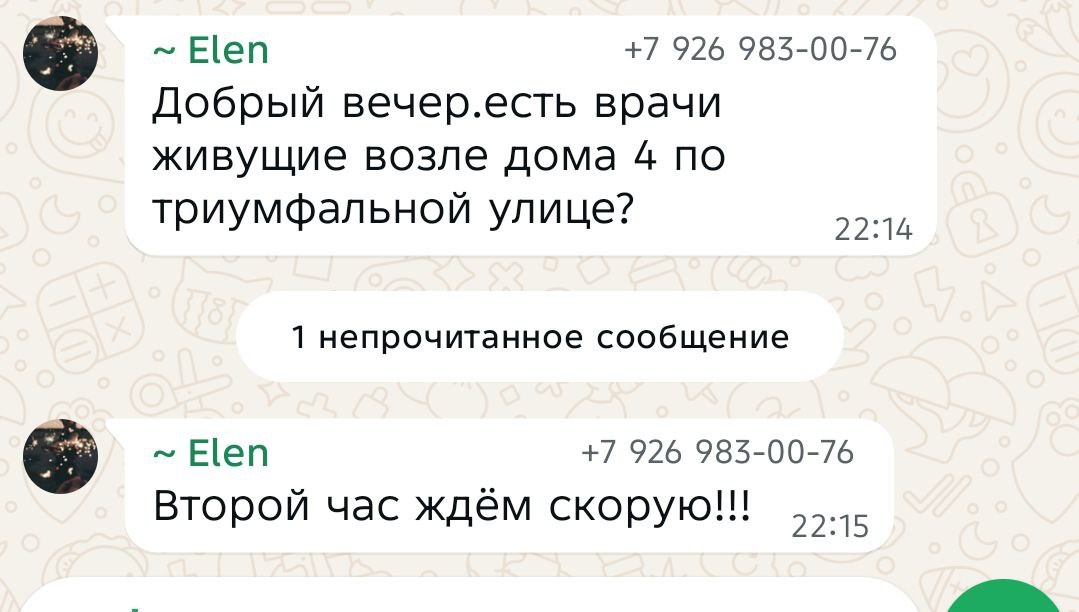 Соседи пишут. Нужен врач. 2 часа скорую ждут.