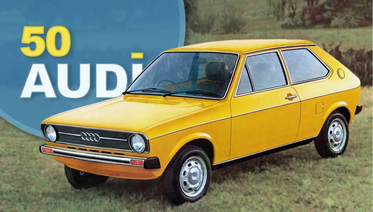 Audi 50 — это небольшой, но очень важный автомобиль в истории марки. Он стал первой попыткой Audi выйти в сегмент компактных городских машин, где доминировали Volkswagen, Opel и французские бренды. Именно Audi 50 стал основой для будущего Volkswagen Polo и показал, что даже маленькая машина может быть стильной, технологичной и удобной. В начале 1970-х автомобильный рынок Европы стремительно менялся. Люди всё чаще выбирали компактные автомобили для города — экономичные, практичные и доступные. Audi, известная в то время в основном седанами бизнес-класса, решила попробовать свои силы в новом сегменте. В 1974 году на автосалоне во Франкфурте дебютировал Audi 50 — первый переднеприводный хэтчбек марки и самая маленькая модель в истории Audi. Автомобиль выпускался всего три года, но оставил заметный след, став основой для целого поколения компактных машин Volkswagen Group. Audi 50 выпускался на заводе в Неккарзульме и был доступен в кузове 3-дверный хэтчбек. Машина была построена на новой п