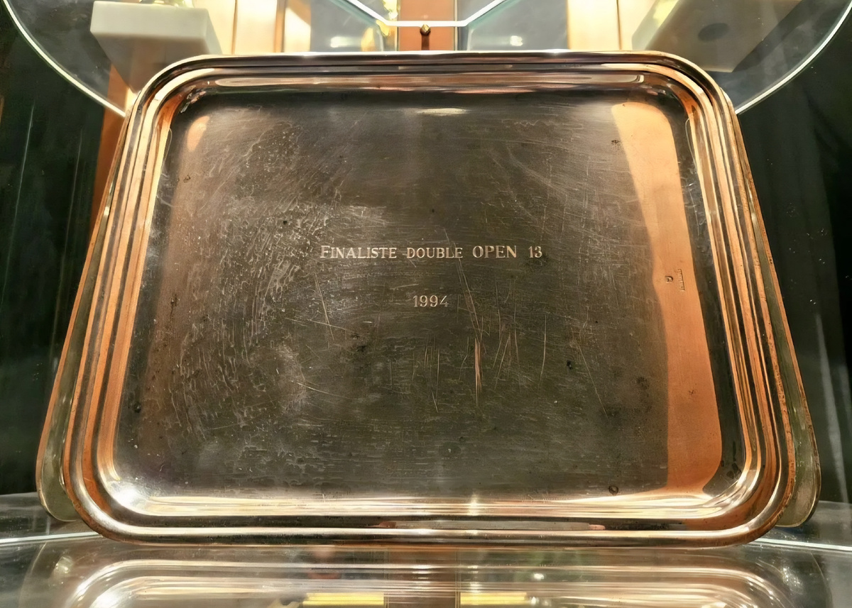 ➡️ Непосредственно на турнире в Марселе (который назывался Open 13 и проводился с 1993 года) в середине 90-ых подобные подносы вручали и финалистам и победителям. На ФОТО ниже - чемпионы турнира в Марселе Марк Россе (1993) и Ги Форже (1996) с этими подносами: