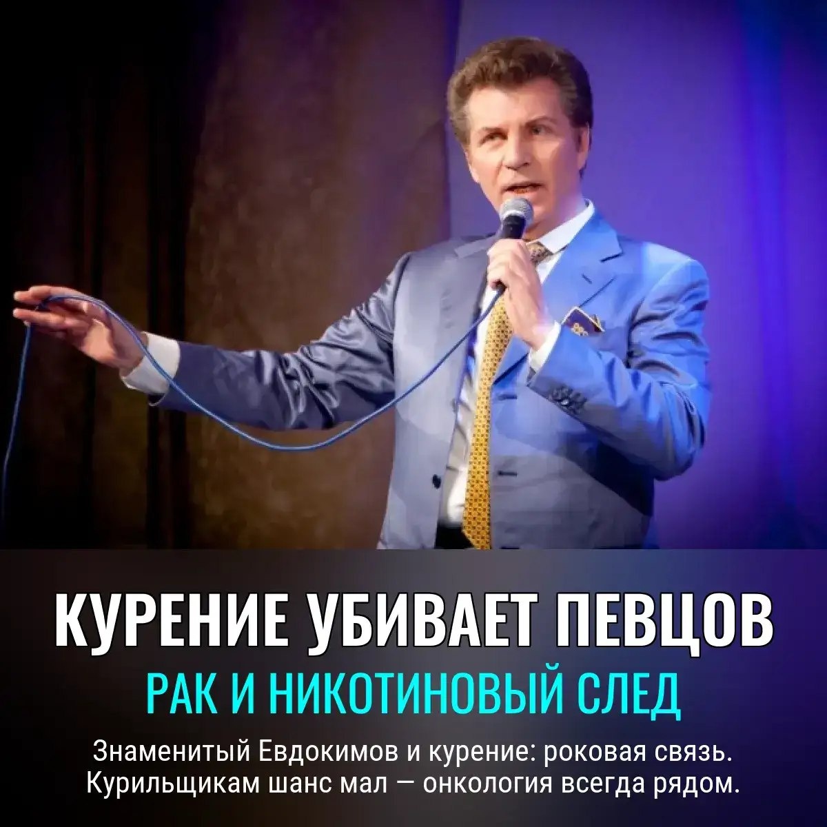 Дымок со вкусом рака У кого легкие как коптильня — шанс узнать онколога лично просто зашкаливает. Известный певец Ярослав Евдокимов стал очередной жертвой привычки, которую наши СМИ так долго романтизировали. Да, 40% рака — привет сигаретам. А бросить курить, как выясняется, иногда поздновато. Операция, как выяснил Евгений Черемушкин, не всегда билет к жизни – может и ускорить финал. Иронично, не правда ли? Так глоток дыма превращается в последнее дыхание., Следите за новостями 📩