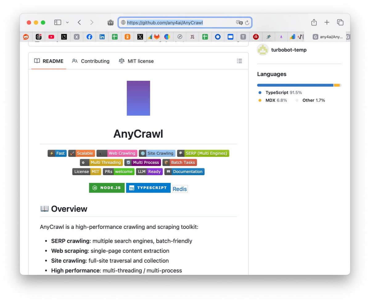AnyCrawl - это такой бодрый "швейцарский нож" для парсинга :)