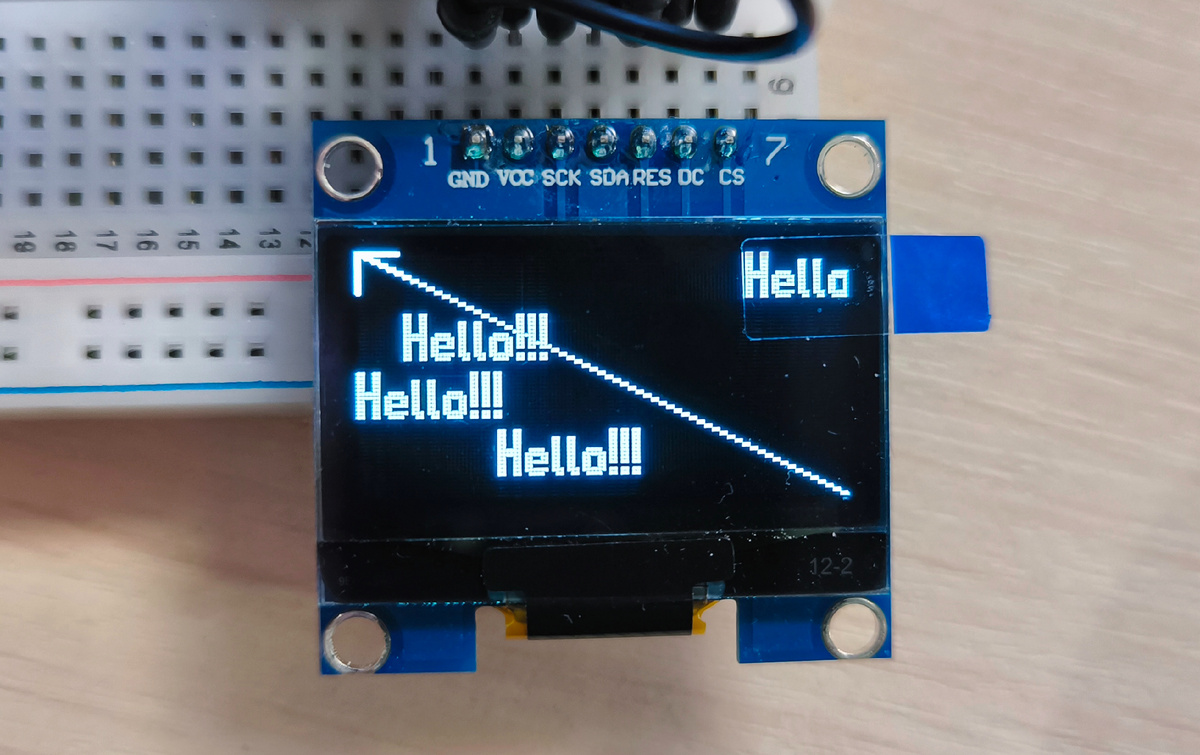 Экран работает с драйвером SH1106 или SSD1306. Исходный код простого примера работы с ESP32: