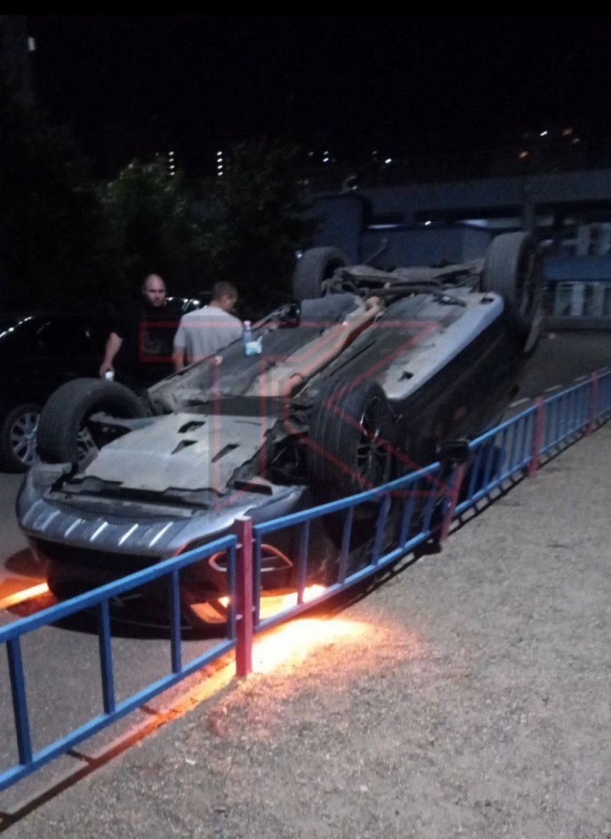 Сегодня вечером во дворе ЖК «Парусная Регата» на ул. Автолюбителей водитель легковушки умудрился повредить два припаркованных авто и перевернуть свою машину на крышу.