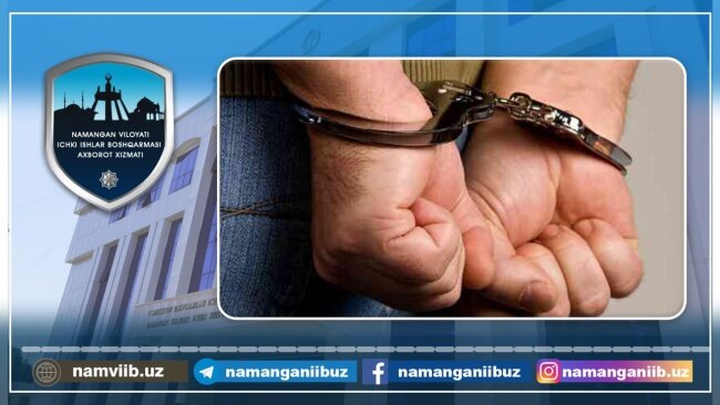 Сотрудниками органов внутренних дел было проведено оперативно-розыскное мероприятие. В ходе мероприятия сотрудниками отделения внутренних дел города Намангана был задержан житель махалли "Чуртук" Уйчинского района, 1990 года рождения. Задержание проводилось на территории Давлатабадского района. Ранее данный гражданин был объявлен в розыск по подозрению в совершении преступления. Ему была инкриминирована часть 3 статьи 167 (Хищение путём присвоения или растраты) Уголовного Кодекса Республики Узбекистан.