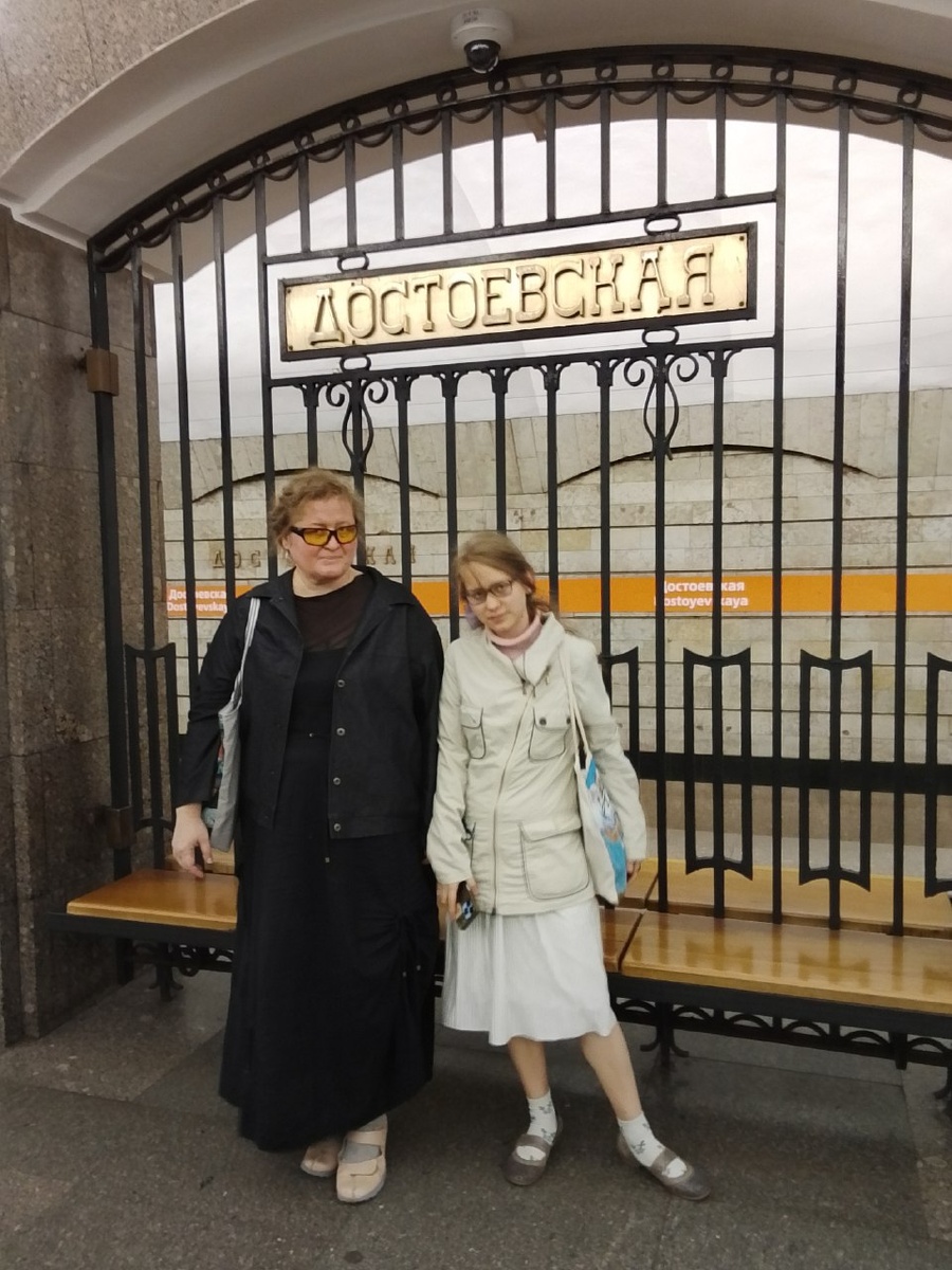 А пешеходная экскурсия по местам, связанным с «Преступлением и наказанием», была ничуть не хуже. Только принцесса была прекрасная, а погода была ужасная. Нам в этот день несказанно повезло с экскурсоводом и страшно не повезло с погодой. Практически все два часа, которые, кстати, пролетели мгновенно, лил нескончаемый дождь, от которого зонты спасали очень плохо. Но погода в Питере — это... Погода в Питере. Её причуды с лихвой компенсировались потрясающим рассказом экскурсовода, от которого вся наша группа осталась в полном восторге. Нашим гидом оказалась известная в Питере монахиня, инокиня Аркадия Ковина, кандидат филологических наук, сотрудник Музея Достоевского, где мы и заказывали экскурсию. И это был просто праздник какой-то. Сестра Аркадия, которая, к слову, всего на полтора года старше меня, цитировала по памяти огромные куски из «Преступления и наказания» и критических статей, попутно анализируя их, рассказывала нам историю улиц Петербурга и романов Достоевского, ловко бегая и прыгая по лужам с такой скоростью, что мы за ней едва успевали. И, признаться, давно я не слышала такого правильного, богатого и выразительного русского языка, такого фееричного течения мысли и не сталкивалась с такой эрудицией...