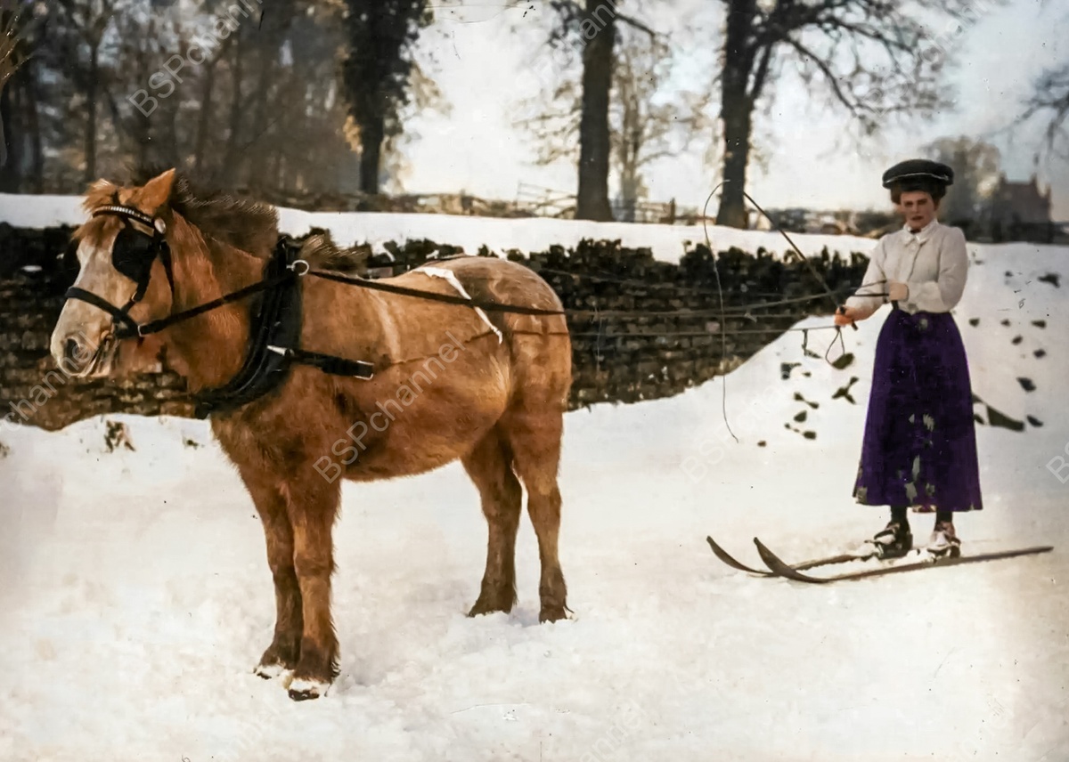 Женщина, которую тянет лошадь в Нортгемптоне. Англия, 1908 год.