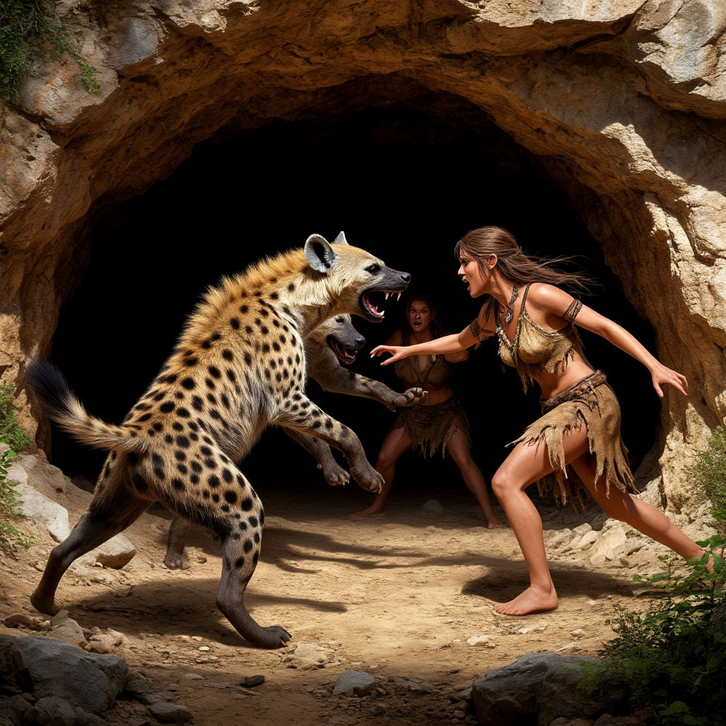 Клану прямых родственников бывшей предводительницы противостоял клан амбициозных дальних потомков. После нескольких стычек первые всё же взяли верх. Гиена-плебейка, её самец и поддержавшая их пара должны присягнуть на верность новой королеве или умереть. Впрочем, и этого выбора им не предоставили. Более многочисленная стая их противников теснила четверку вглубь пещеры. Близился последний акт кровавой междуусобной резни.