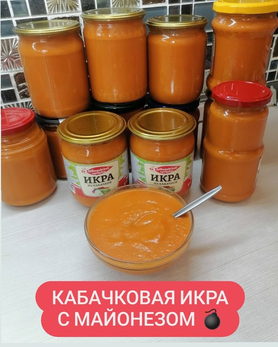 Девочки, по вашим просьбам выкладываю сегодня рецепт в ленту очень вкусной кабачковой икры с майонезом. От покупной не отличите😂 Ингредиенты : 👉Кабачки молоденькие 7кг 👉Лук 1200 кг 👉Соль 2-столовых ложки 👉Сахар 100гр 👉1 столовая ложка растительного масла. Кабачки и лук пропускаем через мясорубку (с кабачков снимаем кожицу) И добавляем все ингредиенты. Ставим на медленный огонь и тушим 3 часа, переодически помешивая. Затем добавляем 👉Майонез 67%жирности 500гр 👉Густая томатная паста 500гр 👉И томатная паста пожиже тоже 500гр Всё добавить и тушить ещё 1 час. Хорошенько взбить блендером , чтоб небыло комочков. Разливаем по банкам, укутываем, как банки остынут убираем в погреб. 👉С одной порции получается 12 баночек по 0,5л. Очень вкусная икра отлично хранится всю зиму. Пробуйте👍 это оочень вкусно‼️ С Заботой и Любовью ❤️ Ваша Сибирячка 💃