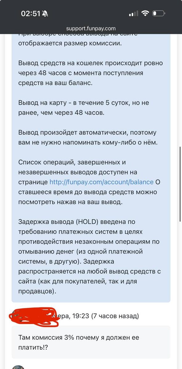 Какое же дно фанпей, мне нужно было там кое что купить (сумма покупки 300к) я купил, возврат зачисляется только на счет фп и что бы вывести надо заплатить комиссию 3% это 9к рублей и пофиг что не я виновник отмены. Будем смотреть что они напишут дальше