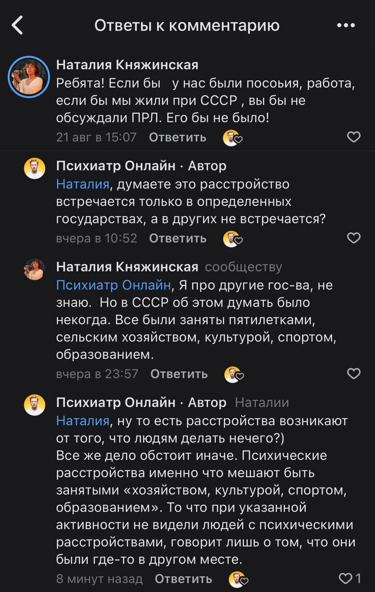 Мы тут с вами сидим в пузыре своем, а за его пределами по прежнему «в СССР некогда было вашими депрессиями болеть». Если кто-то хочет вежливо(!) донести как обстоят дела на самом деле, то это комментарий, оставленный здесь: vk.com/wall-213183298_72