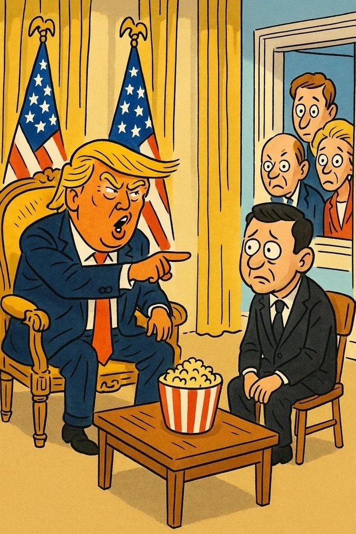 Чего ждать дальше? "Минск-3" или "Трамп спасет мир" В Белом доме прошла встреча, посвящённая Украине. Судя по выражению лиц, выглядела она как попытка уговорить Россию на «Минск-3». Ну то есть новый вариант старой песни: «А давайте сделаем вид, что всё закончилось, пока не началось заново». Зеленский на встречу слегка опоздал. Видимо, Uber подвёл. Пришёл в чёрном костюме — символично: одновременно и на свои похороны, и на похороны режима. Впрочем, костюм сидел неплохо — трагические события тоже должны быть стильными. Трамп выглядел бодро, как человек, который уверен, что мир спасёт именно он. Ему, кстати, даже не нужно было репетировать — он сам себе сценарист, режиссёр и зритель с попкорном. Разговор шёл примерно так: — Владимир, — сказал Трамп, — ты можешь закончить войну прямо сейчас. — Но как же Крым и НАТО? — попытался вставить Зеленский. — Крым? — переспросил Трамп. — Его ещё Обама отдал двенадцать лет назад. Даже чека нет! После чего Трамп добавил, что позвонит Путину сра