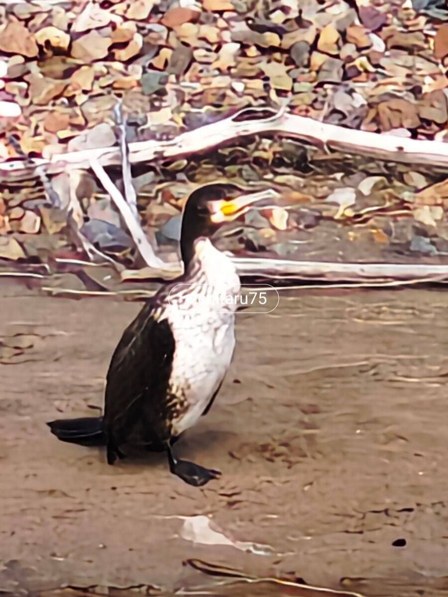 Говорят, что это может быть баклан. Он важно наблюдал за обстановкой на берегу реки.